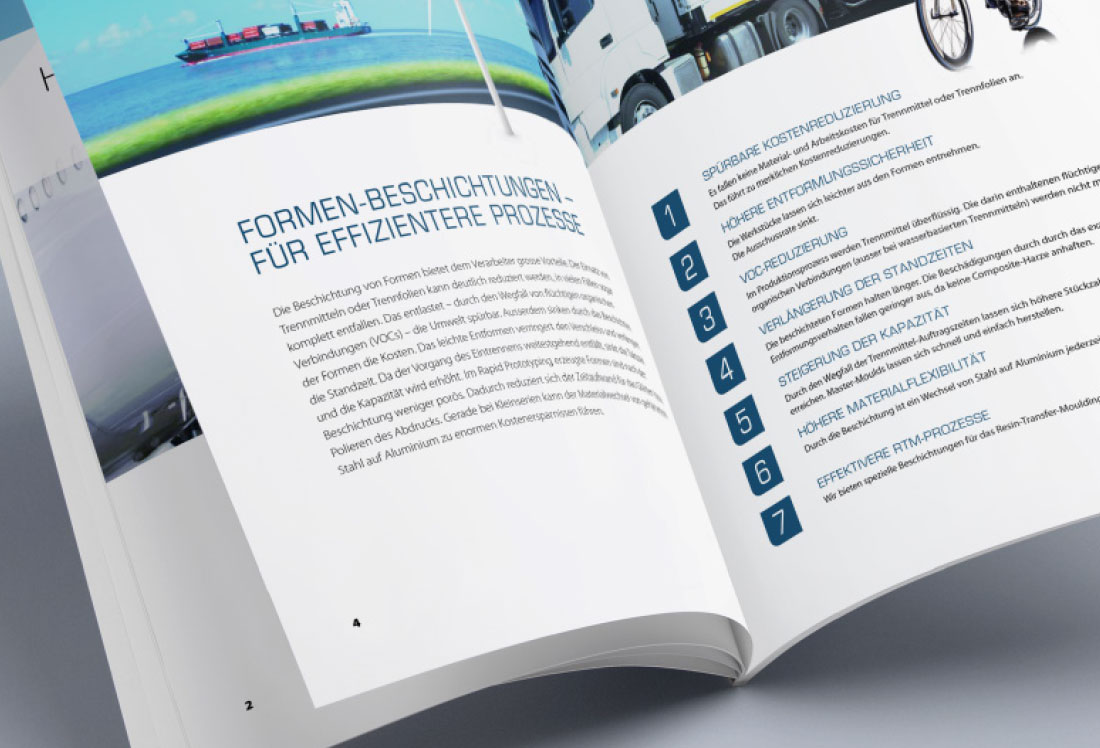 Konzept und Gestaltung von Prospekten und Datenblättern für die Bereiche „PROFESSIONAL BAKEWARE COATINGS“, „COMPOSITE COATINGS“, „MEDICAL COATINGS“ und „RELEASE COATINGS“ – Inklusive Texte und Erstellung der Info-Grafiken